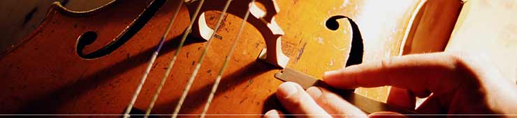 Sound AdjustmentsThere are many aspects of an instrument’s structure and set-up which affect the way in which its sound is produced. However there are a number of aspects which can be easily altered to improve tonal quality and projection. These include the strings, bridge, soundpost, tailpiece and in the case of a wolf note, a simple metal eliminator often resolves the problem. Our approach in improving tonal quality is to first identify the exact concern. For example, is there difficulty with the overall projection, a specific range of notes, the balance between strings, one string in particular, general resonance, or as mentioned previously, a wolf note. By checking the instrument’s measurements and set-up, we address each element step by step, and advise an approach to achieve the improvements we are looking for with the minimum about of disturbance to the instrument. We suggest only those changes that will guarantee an improvement. It could be that a very slight movement in the position of the soundpost, or a change of the string length will provide the answer. Please contact us if you have any concerns regarding your instrument’s sound production and we can guide you through the processes and possibilities to achieve its optimum tonal quality.